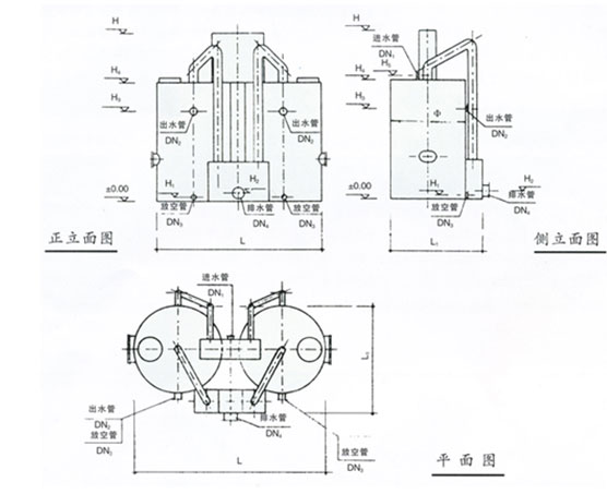 重力式無閥過濾器相關尺寸表